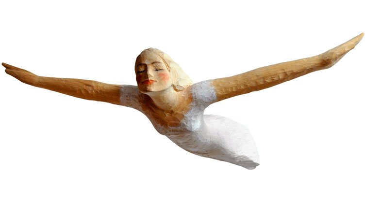 Michael Pickls Holzskulpturen fallen auf mit ihrem stillen Humor, der sanften Schönheit und starken