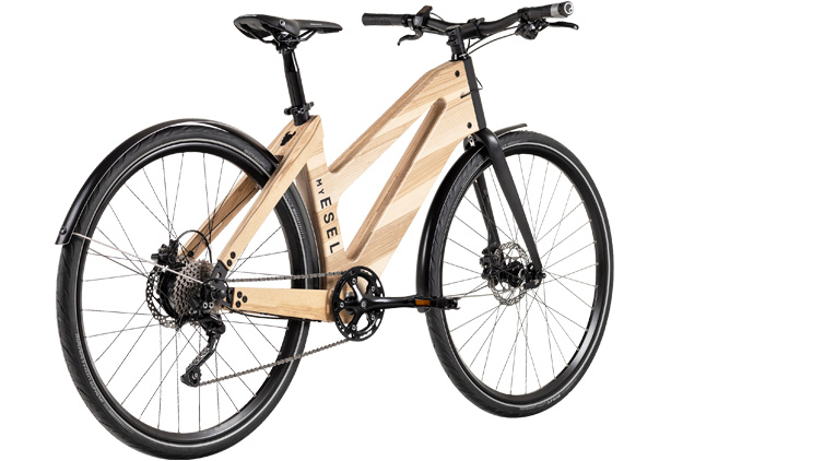 Durch seine Steifheit und sein hohes Dämpfungspotenzial bei Erschütterungen und Vibrationen eignet sich Holz hervorragend für den Bau von Fahrrädern. Dazu verwendet das Unternehmen ausschließlich das Holz heimischer Birken, Eschen und Nussbäume. Nachhaltig und regional läuft bei My Esel jedoch der gesamte Produktionsprozess ab: Die Rahmen werden in Oberösterreich zuerst gefräst und danach wie bei der Skiherstellung im Plattenverfahren mehrschichtig zusammengebaut.
