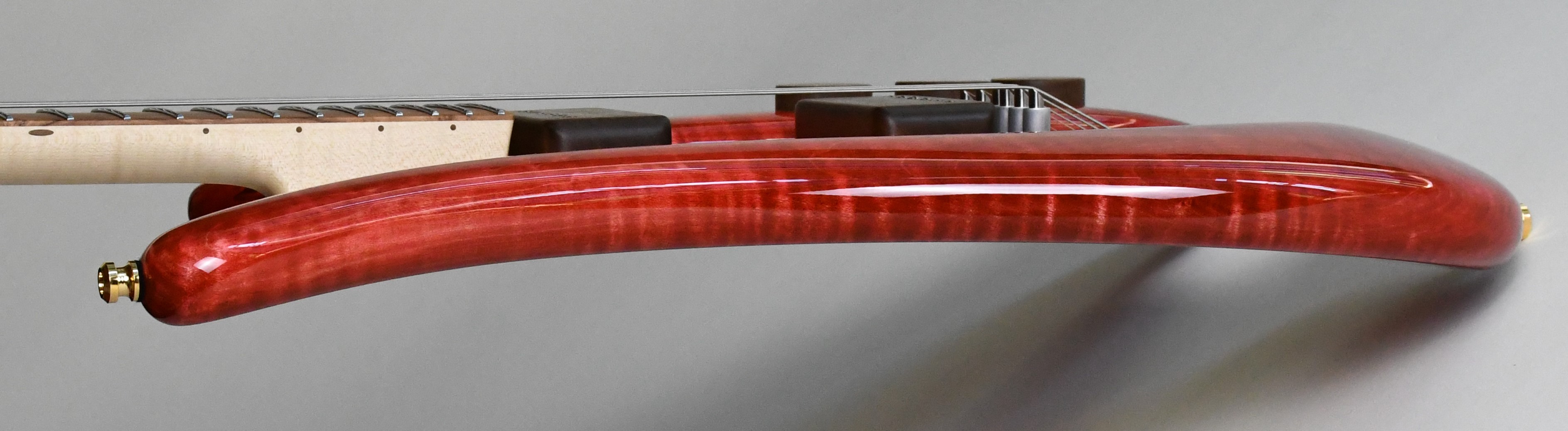 Ist das richtige Holz gefunden, kommt es auf Sorgfalt, Können und Erfahrung an, damit der Sound am Ende stimmt: „Alle Passungen, Inlays und Details müssen auch unter der Lupe noch passen. Das führt natürlich auch zu einem entsprechenden Preisniveau. Schlampig, damit es billiger wird, geht bei mir nicht“, erklärt Bachmaier und verweist auf das handwerkliche Spektrum: „Beim Bau setze ich die gängigen Holzbearbeitungsmethoden wie Sägen, Fräsen, Hobeln, Schleifen, Schnitzen und die Ziehklinge ein“. Auch bei den gekauften Komponenten wie Stimmmechaniken oder Pickups kommt nur allerbeste Qualität in Frage: „In Relation zum Arbeitseinsatz ist es kaufmännisch unsinnig, an dieser Stelle zu sparen“.